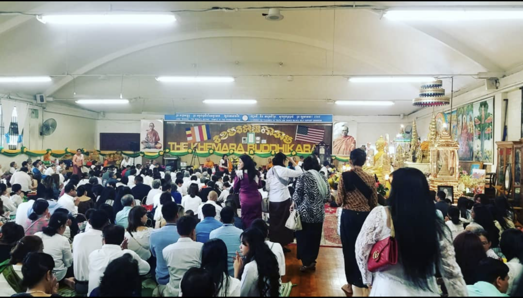 The community that Khemara Buddhikaram has curated is one deeply rooted in Cambodian culture. Since the temple’s founding, it has served as a place to not only celebrate Cambodian culture but to also act as a safe haven for those who migrated away from the violence brought by the Khmer Rouge. This community has valued bringing the culture of Cambodian Buddhism into the United States and creating an area where it can be practiced effectively through this temple. Naturally, due to many of these community members being immigrants or raised by immigrants from Cambodia, deeply rooted ties are apparent between Khemara Buddhikaram and western buddhist communities. Even from the beginning, Chhean Kong was sponsored by the United Cambodian Community in order to receive a visa into the United States in order to foster and build the Buddhist Cambodian community. Now, since many migrants can trace back their heritage to cities such as Phnom Penh, Battambang, or the Angkor region of Cambodia, the culture and influence in teachings are prevalent with the practices that are shared at Khemara Buddhikaram.