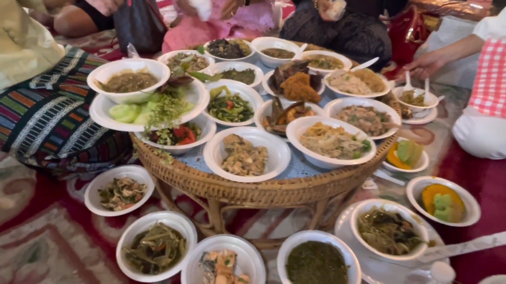 At Wat Lao Dhammavanno, the Kathina Robe Offering Ceremony is held as part of this festival. At the start of the day, visitors can purchase various Lao and Thai food, clothing, and even woven bamboo baskets from individual vendors. Then, each person places small offerings in donation containers for the monks. For lunch, small dishes of rice, curry, and other southeast Asian foods are placed on khantoke trays, which are circular, low-legged tables made from wood or bamboo, and which are used for meals.